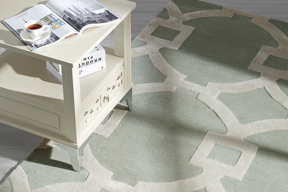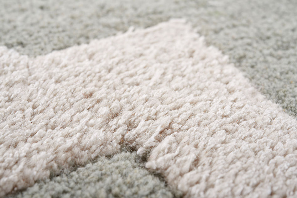 天然羊毛(84%)与人造丝( 16% )相结合,不同材质成就地毯丰富的层次感和光泽感。