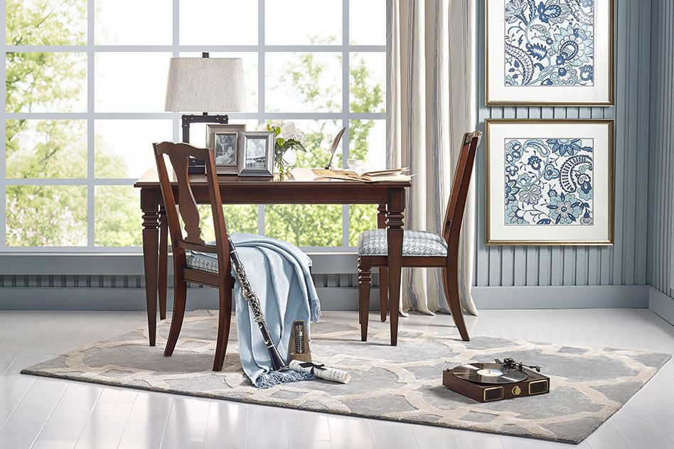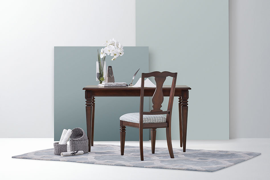 请把腰背交给“蓝调探戈”餐椅,把双脚交给这方温柔的地毯,你只需放飞思绪,让它在书桌前展开一场曼妙之旅。