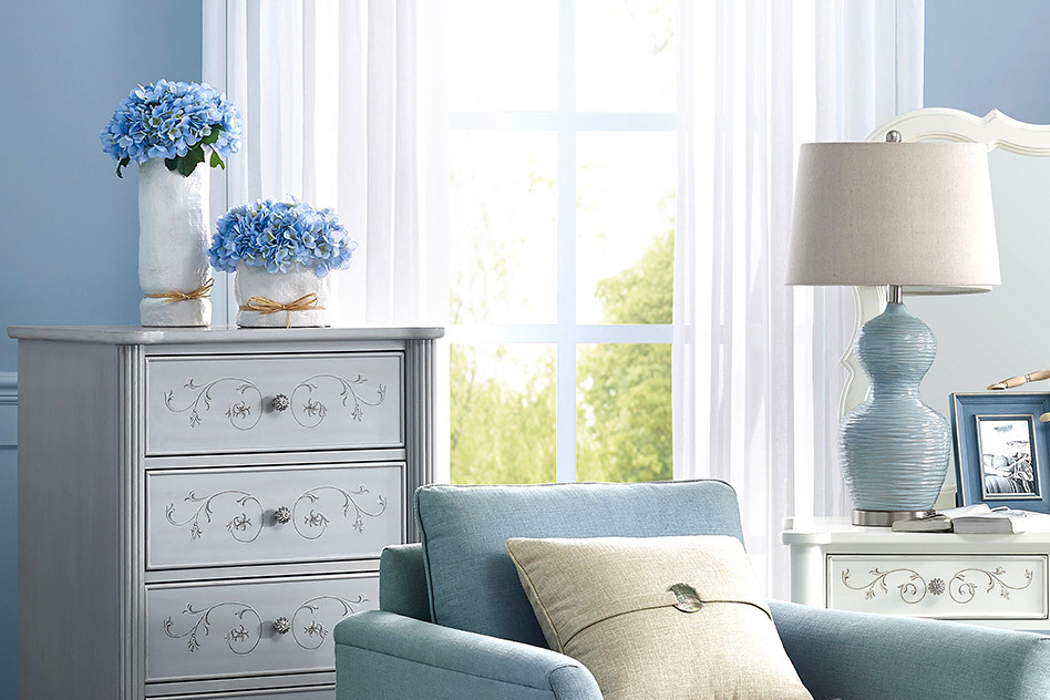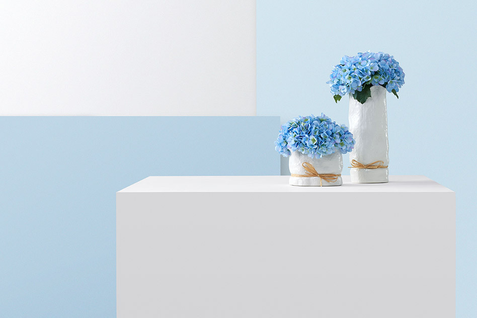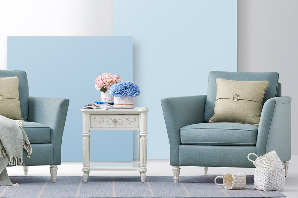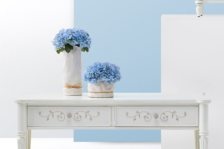顶部淡蓝色净的空间中,蓝色的花团往往能够成为视觉的焦点。